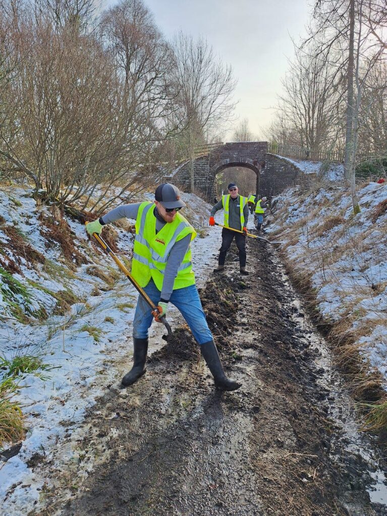 The work party for 14th February 2026 consisted of 11 volunteers with 56 hours of work being carried out in dry, sunny, but cold winter weather. Due to the efforts of the volunteers, all the planned work was carried out as follows: